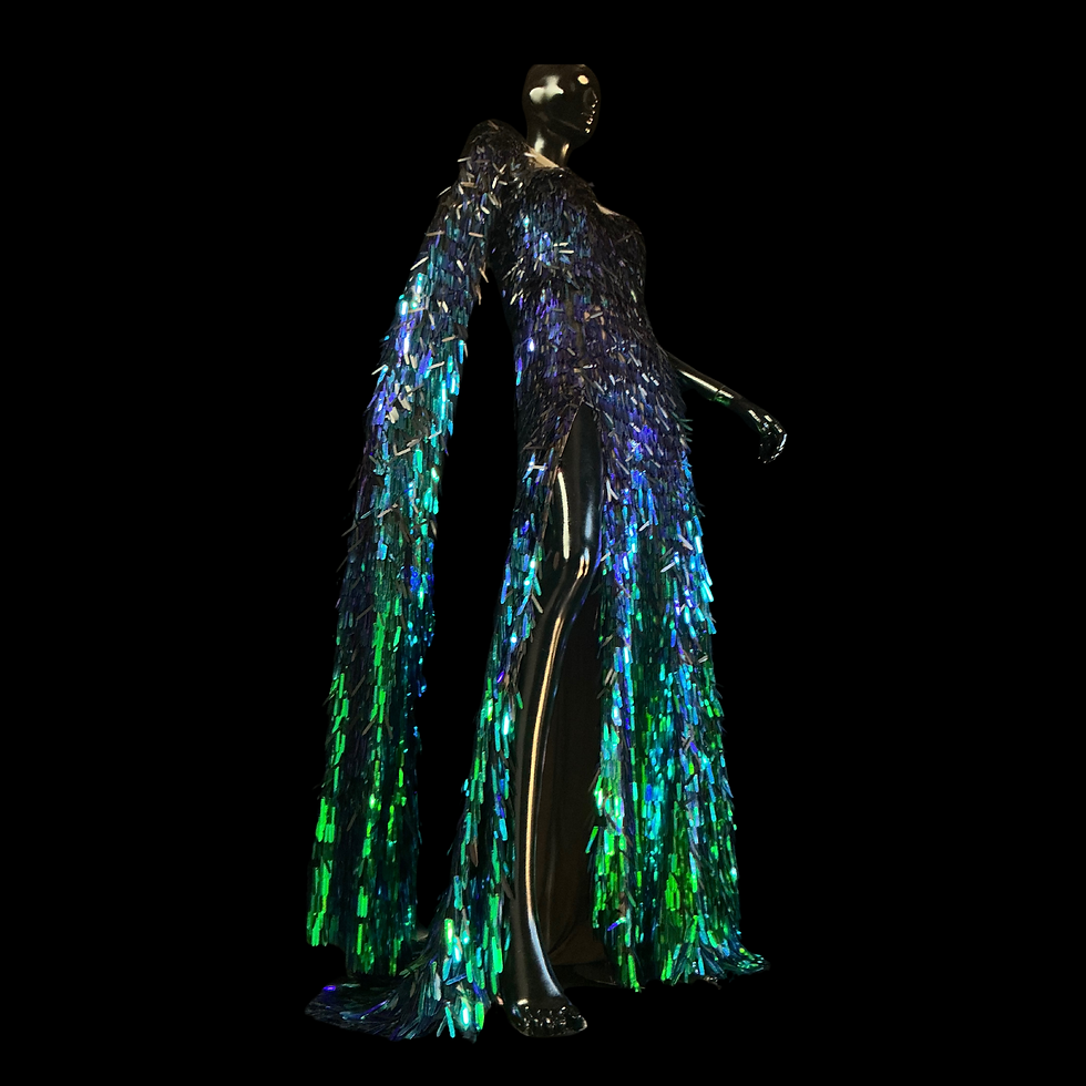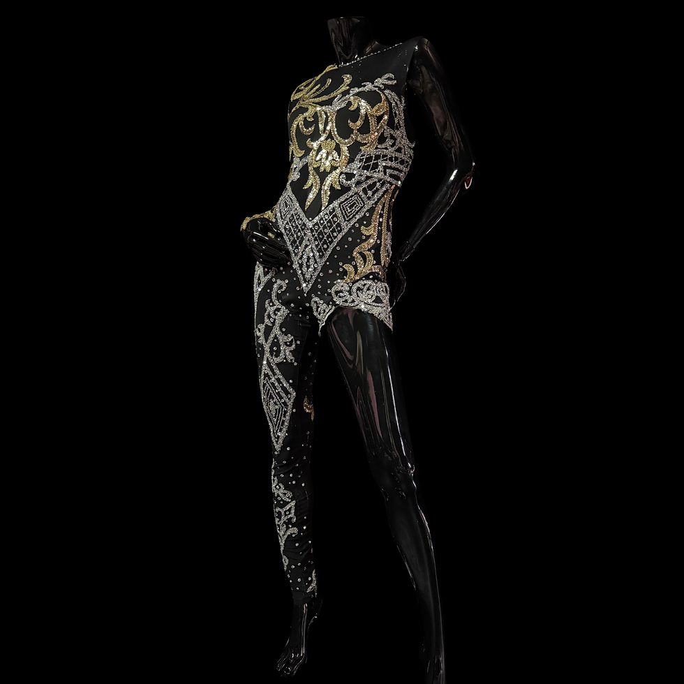 Embelished Black & Gold Crystal Tulle Evening Gown